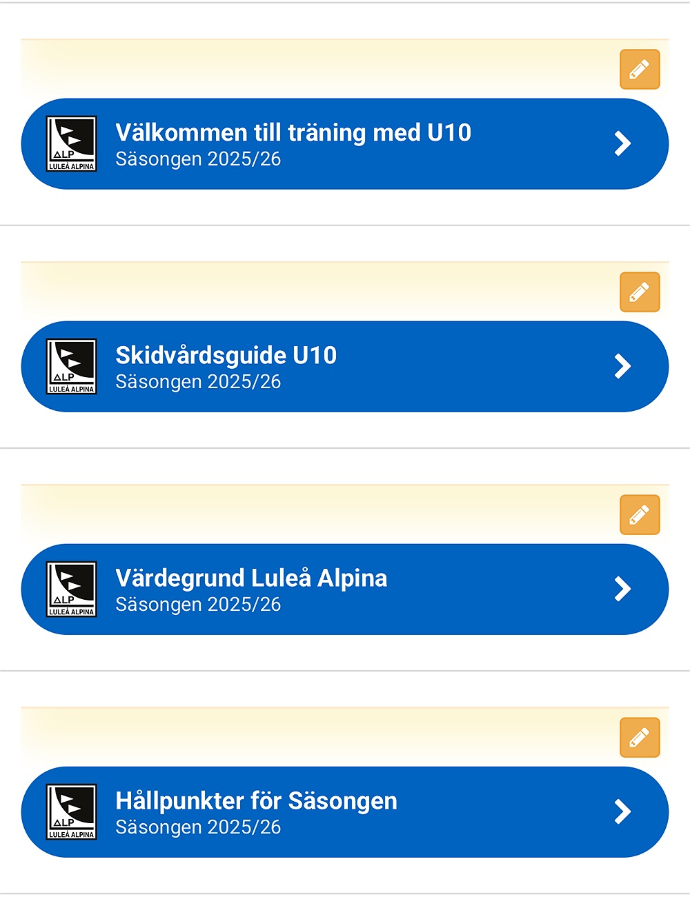 PPn från föräldramötet ligger nu på U10s sida på hemsidan under en "blå knapp", se bild. Denna sida syns inte i appen, men ni blir omdirigerade till hemsidan när ni klickar på en nyhet. Där finner ni också Skidvårdsguiden, LALPs värdegrund samt hållpunkter för Säsongen, dessa listas även nedan.